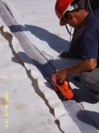 2)焊接前必须将膜表面的油脂、湿气、灰尘、污物碎片及其它妨碍焊接和影响施工质量的杂质清理干净。